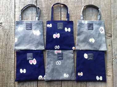 poefu店頭ではmina perhonenのたくさんの鞄たちが