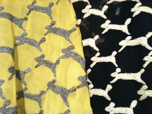 「run run run」のテキスタイルはシルクの楊柳のベース生地にウールブレンドの刺繍を全面に施しています。
