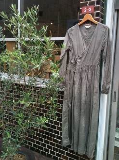 贅沢な生地使いで、ギャザーのアクセント。膝より少し下のロング丈で秋口には前を開けてのコート使いから、あいまいな色調は秋冬のレイヤードにもおすすめです。