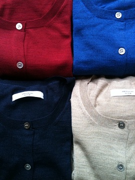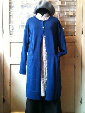 首元がロングタイプのニットカーデでは珍しいラウンドネック。