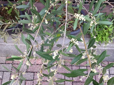 6月初旬、お店の前のオリーブが
