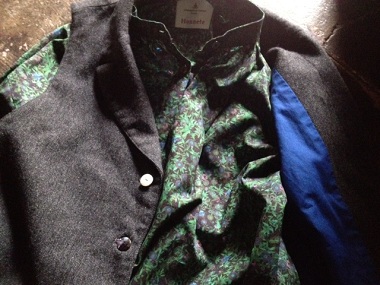 開けてあるボタンのところどころからインナーに合わせた
