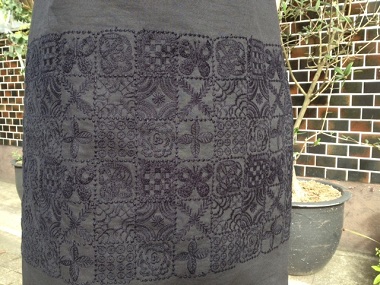 付属の共布ベルトでウエストマークをすることで