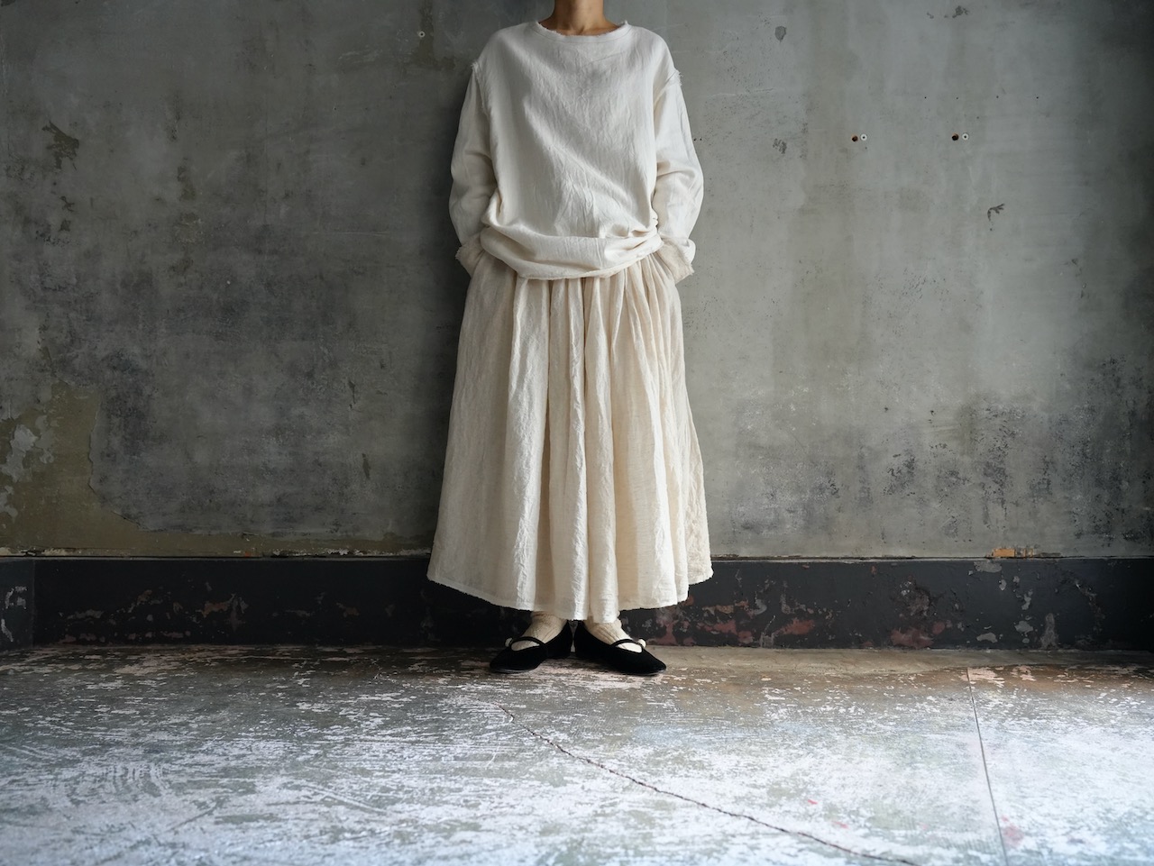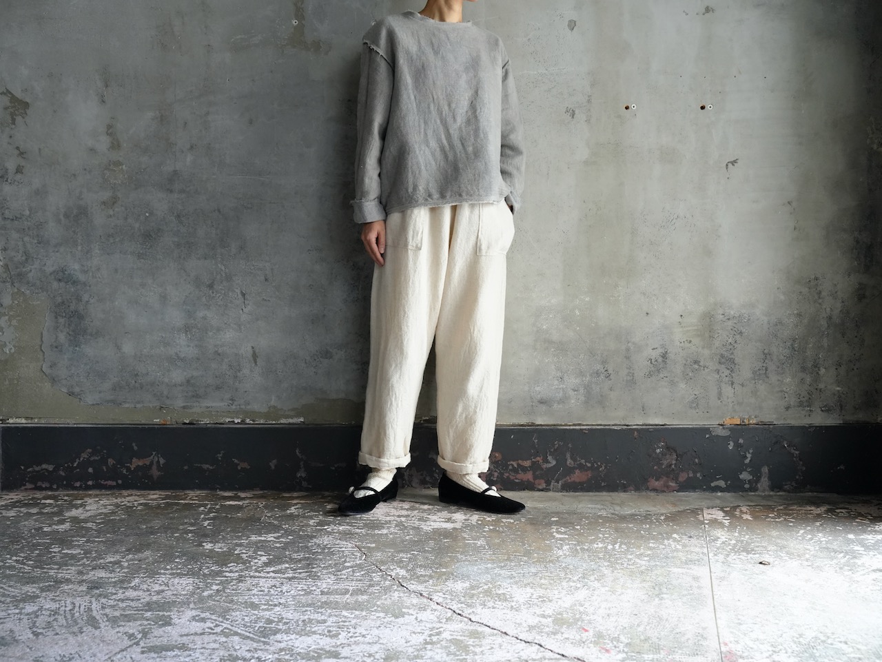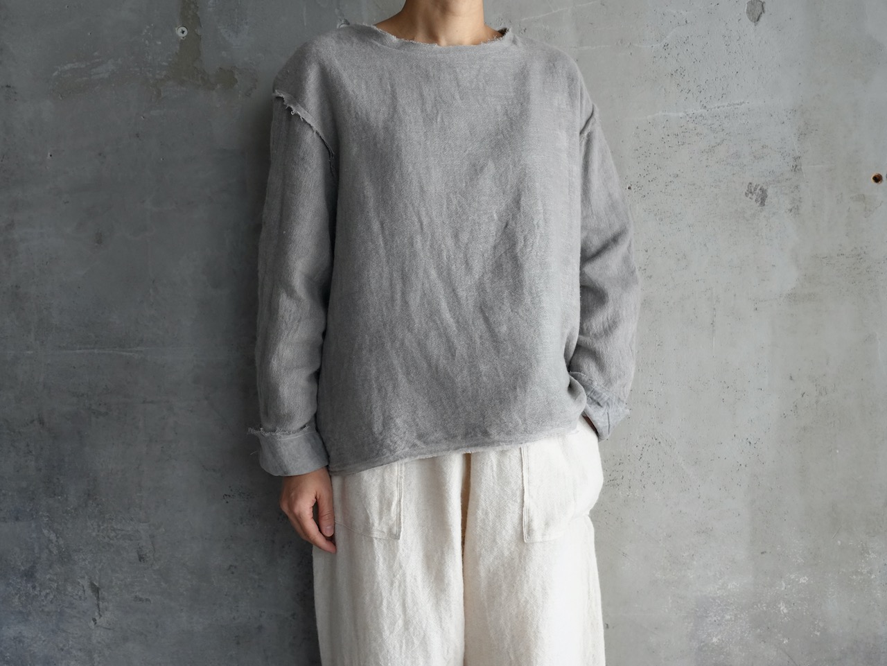 ash greyはデザイナー自らの手染めによる生地染め、ガーゼの生地感も相まって印象的なグレーです。