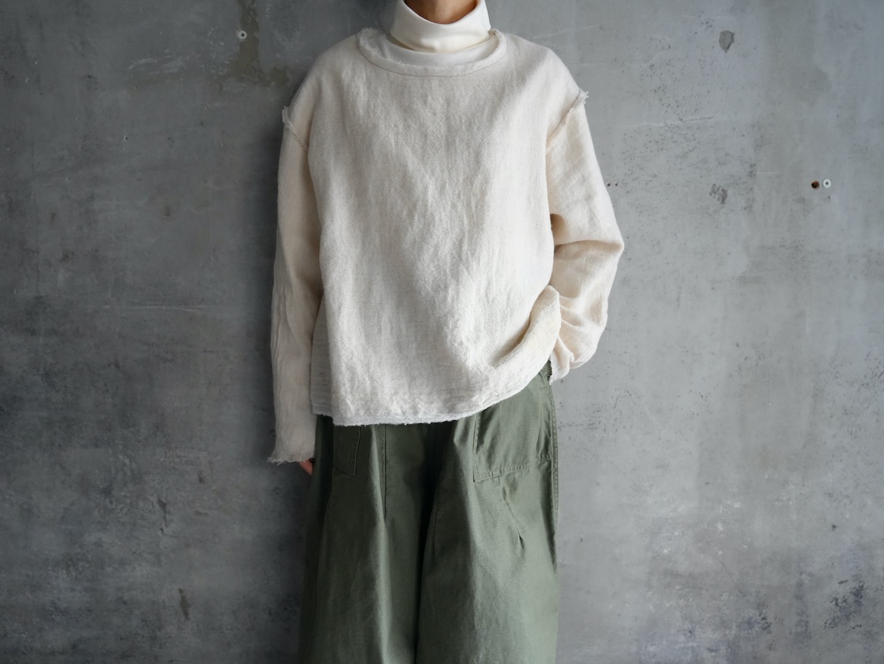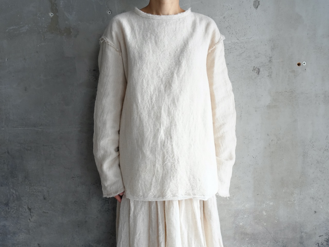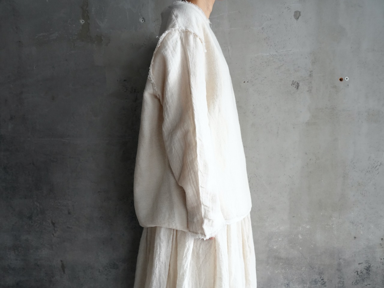 ash greyはデザイナー自らの手染めによる生地染め、ガーゼの生地感も相まって印象的なグレーです。
