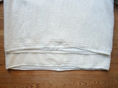 デザイナー自ら2度の洗いとタンブラー乾燥を施し、生機から約15cmほど縮んだ状態の生地ですが、ガーゼという生地の性質上と防縮の観点から、必ずウール用の中性洗剤をご利用ください。