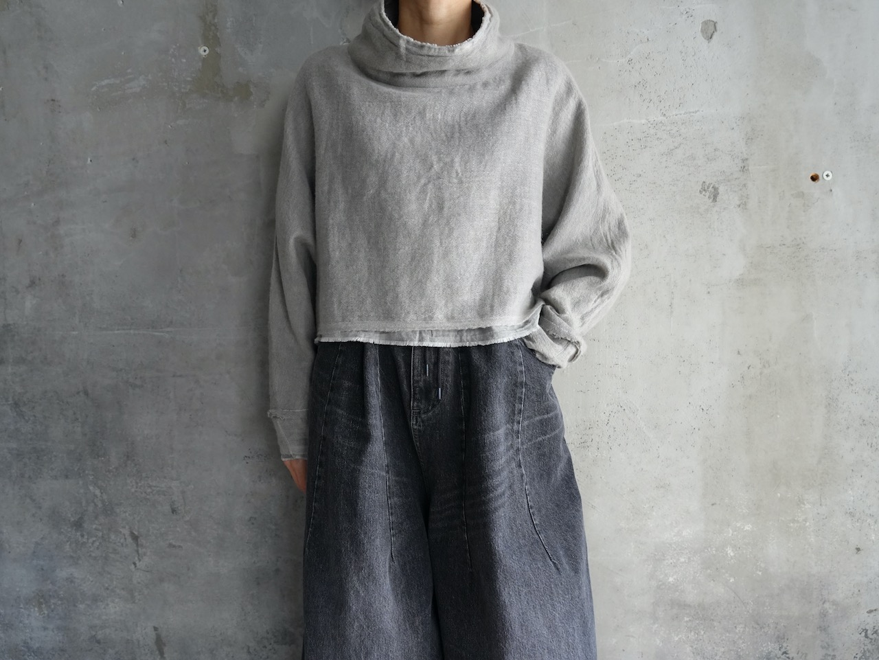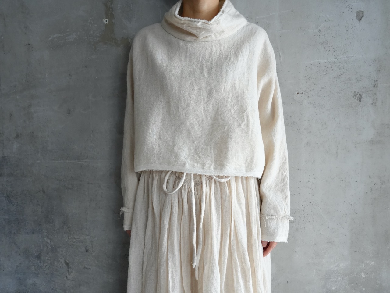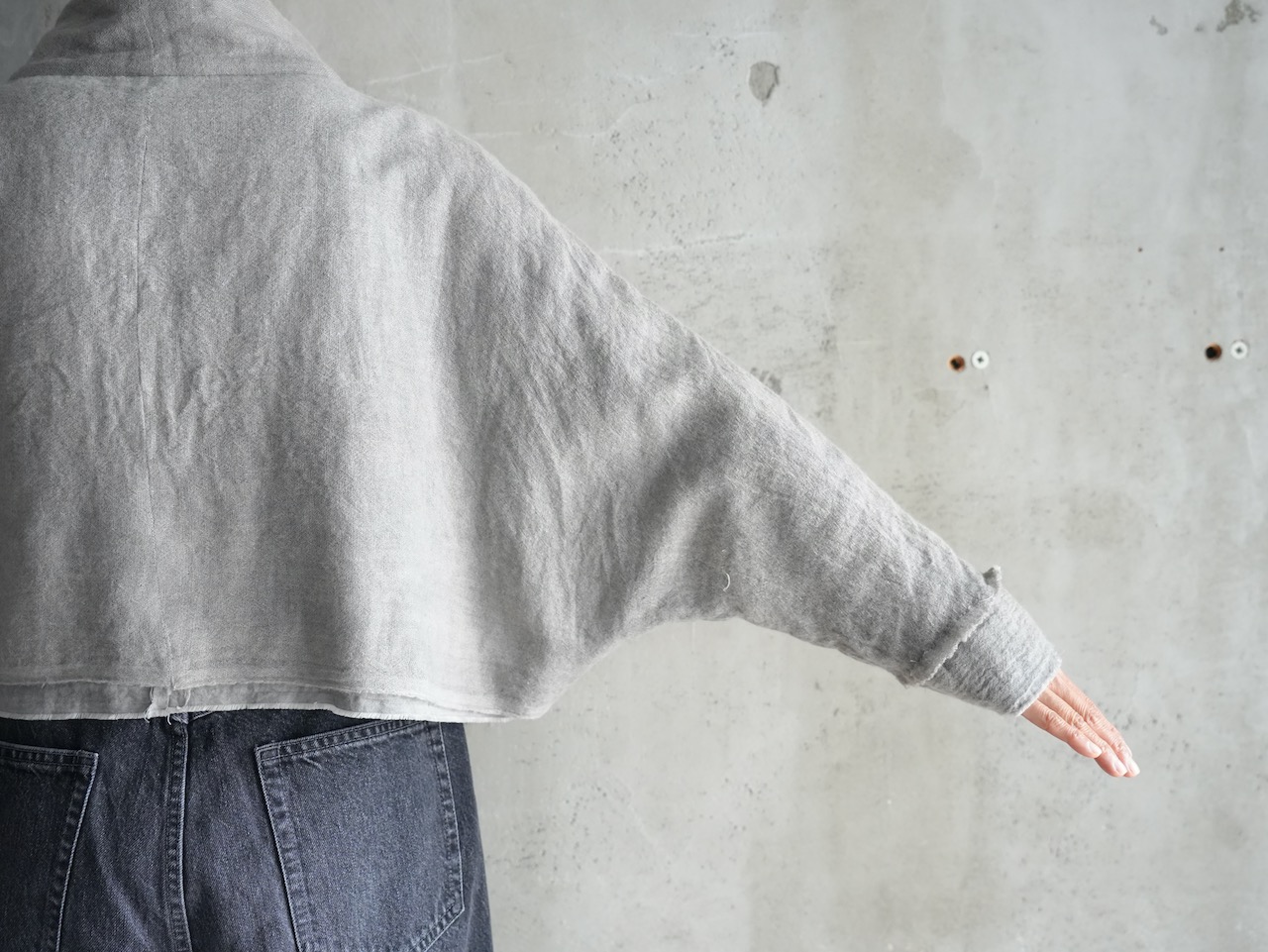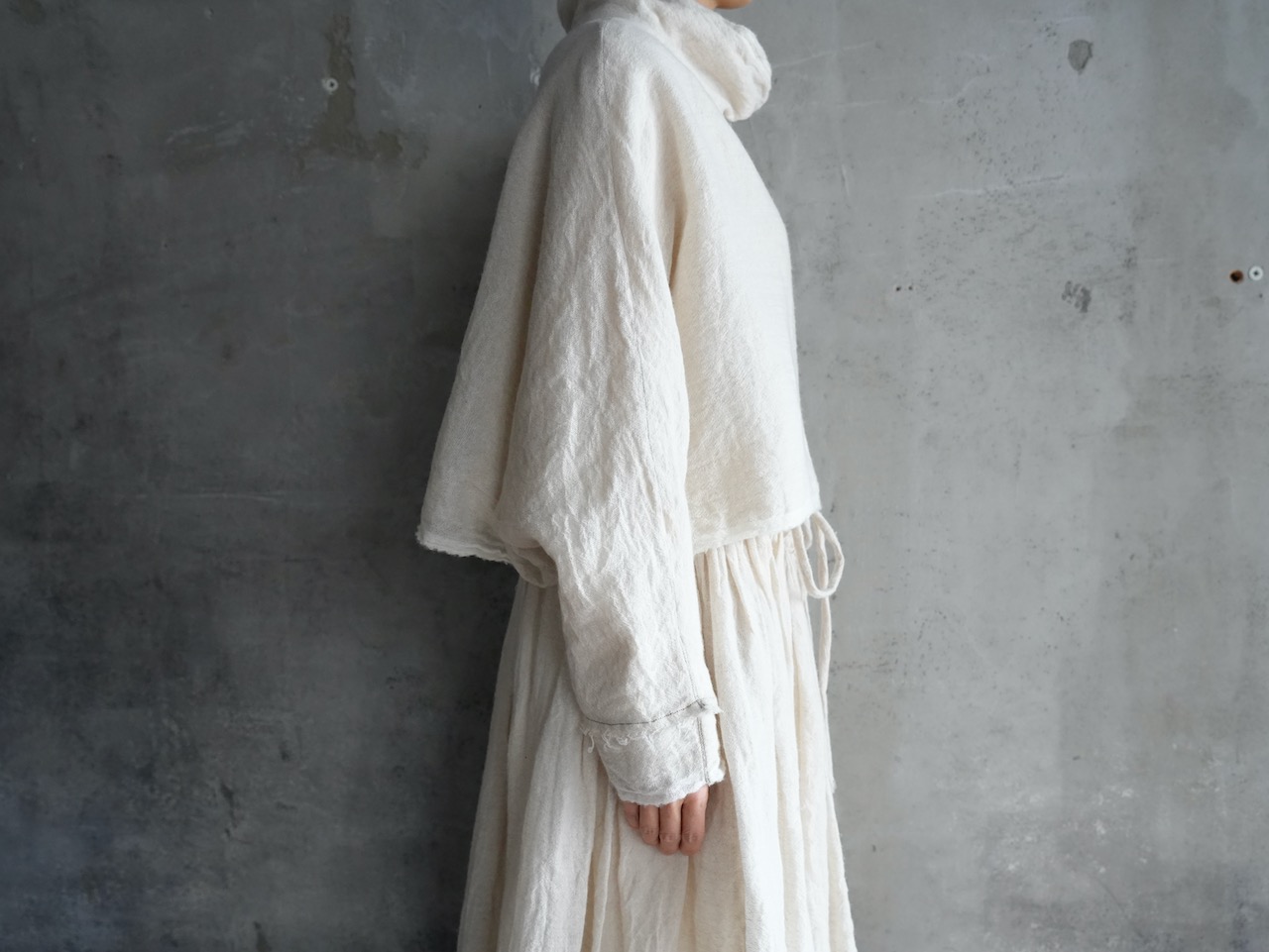 今秋冬の企画展用に新たに制作いただいた、ドルマンスリーブのショート丈ブラウス。