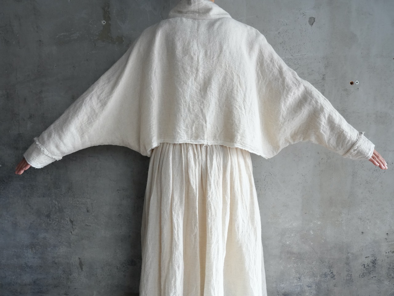 約126cmのゆったりシルエットとドルマン袖、ショート丈の緩急が何とも可愛らしい。