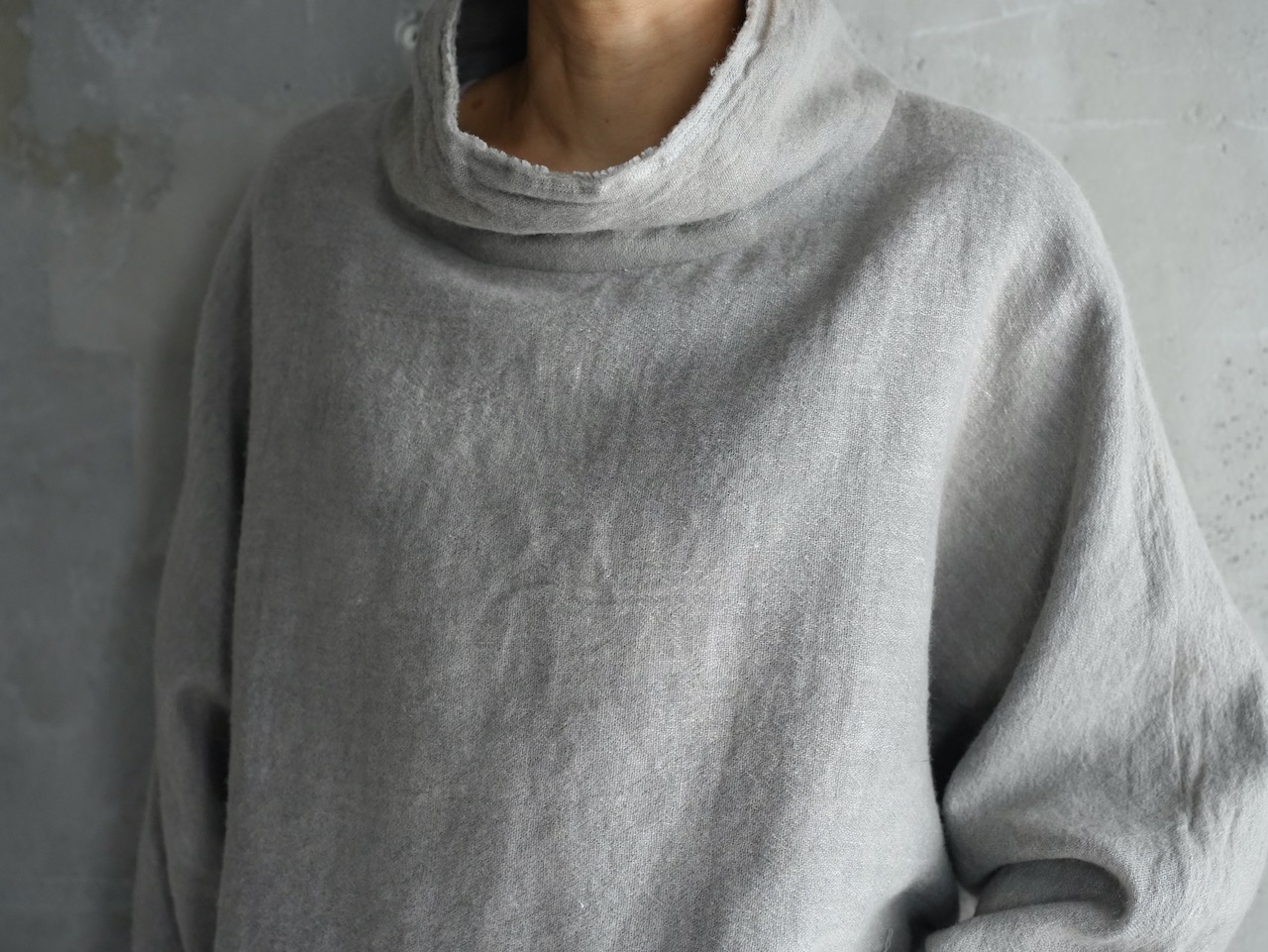 大きな肩下がりで身頃一体のドルマンスリーブ。