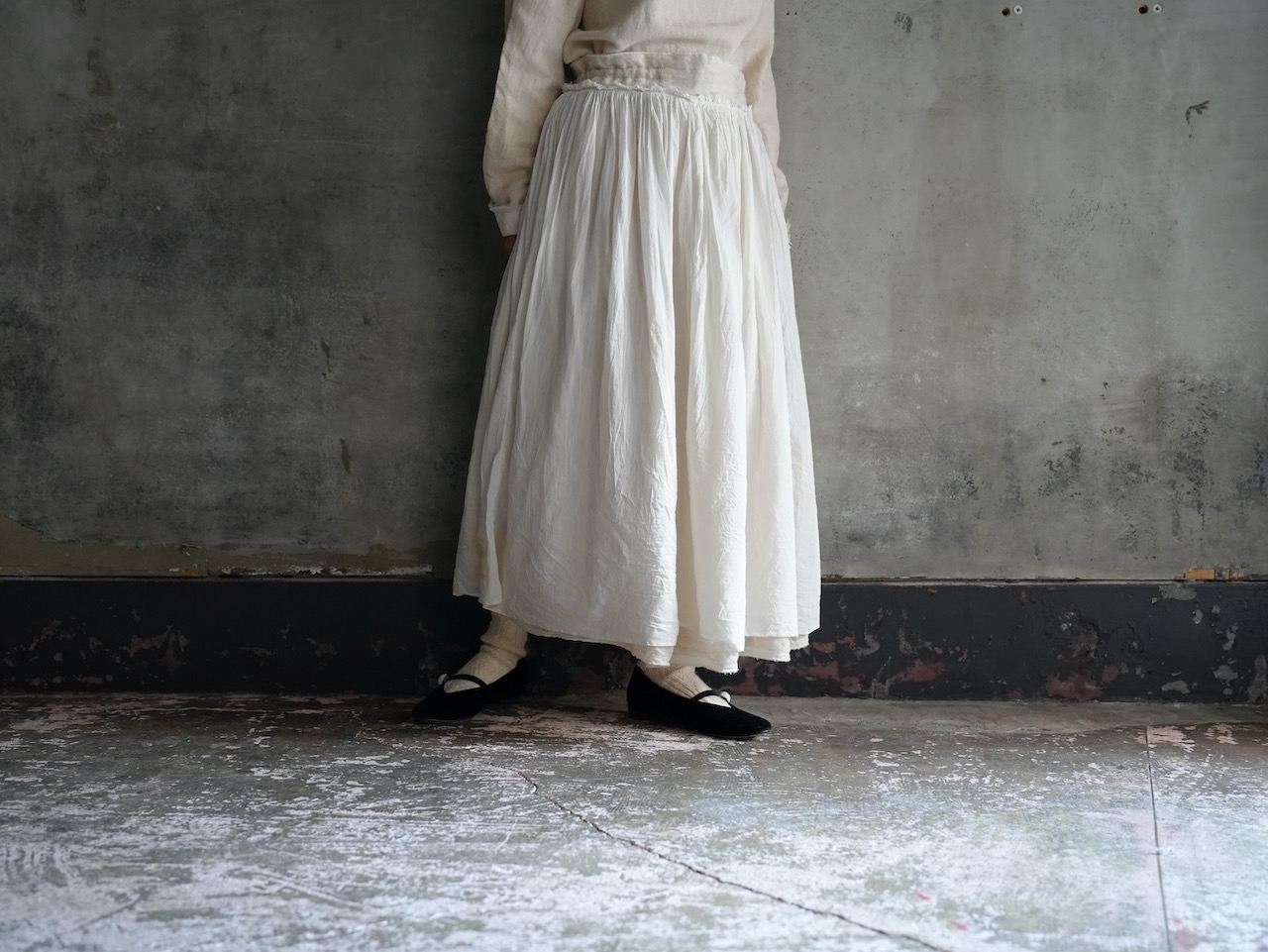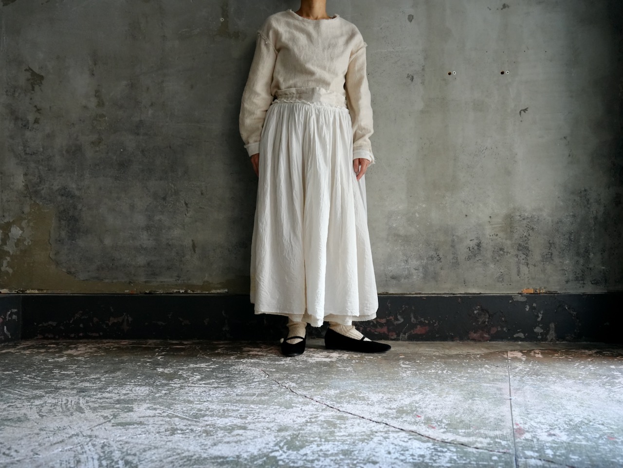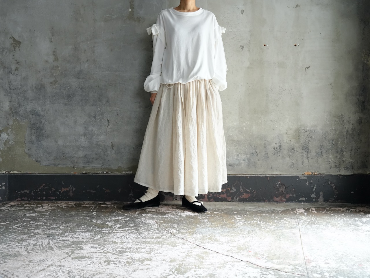 ash greyはデザイナー自らの手染めによる生地染め、ガーゼの生地感も相まって印象的なグレーです。