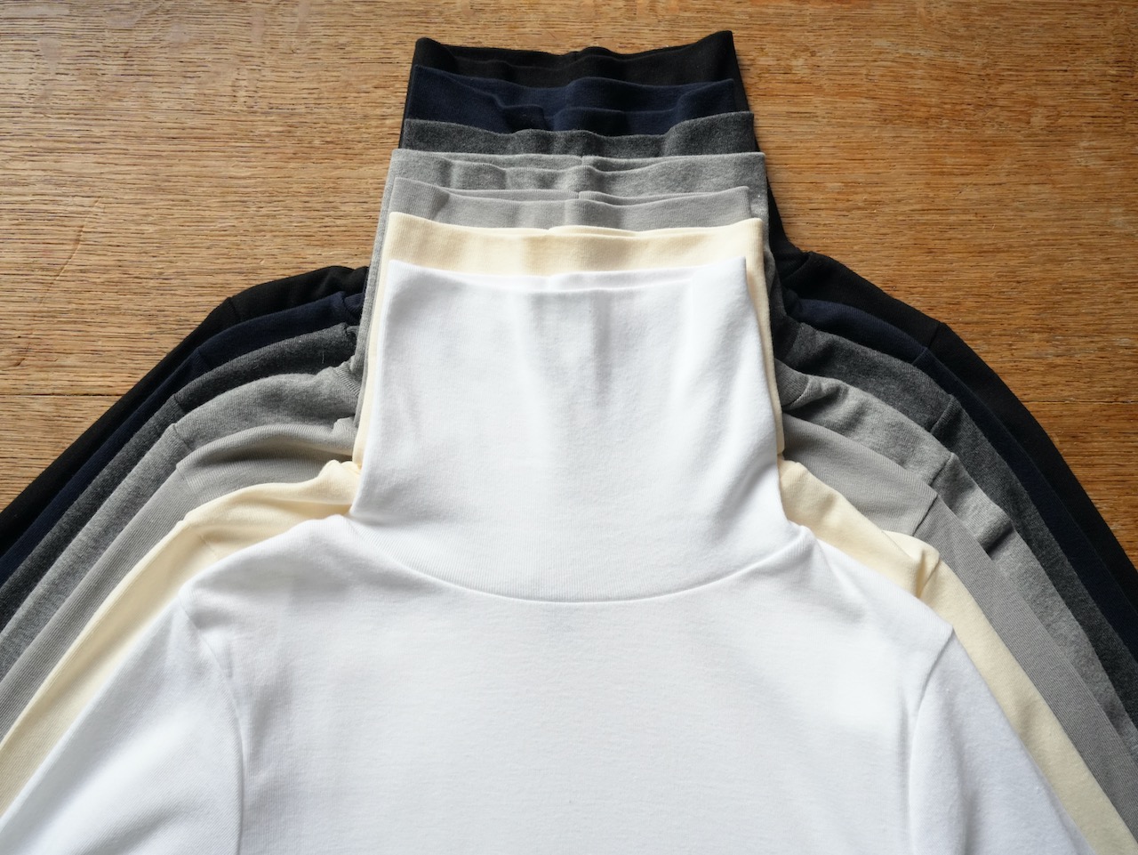 シンプルデザインとスタンダードなシルエットにコットン100%、何かにつけて「ちょうどいい」フランスメイドのタートルネックカットソー。